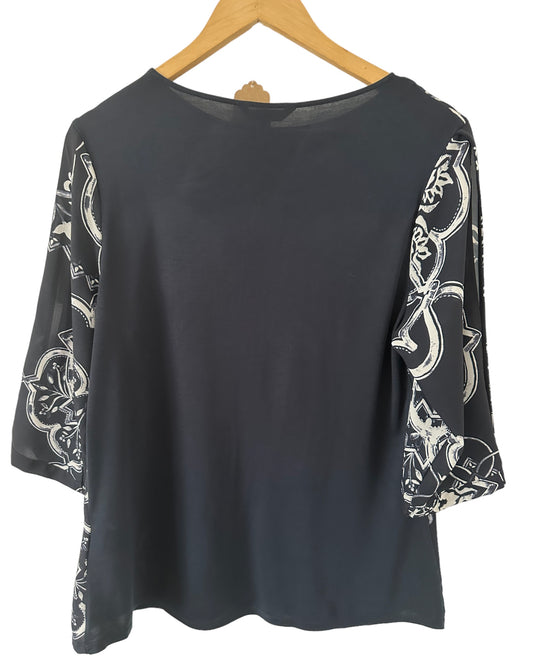 Navy Round Neck Top with Slit Arms